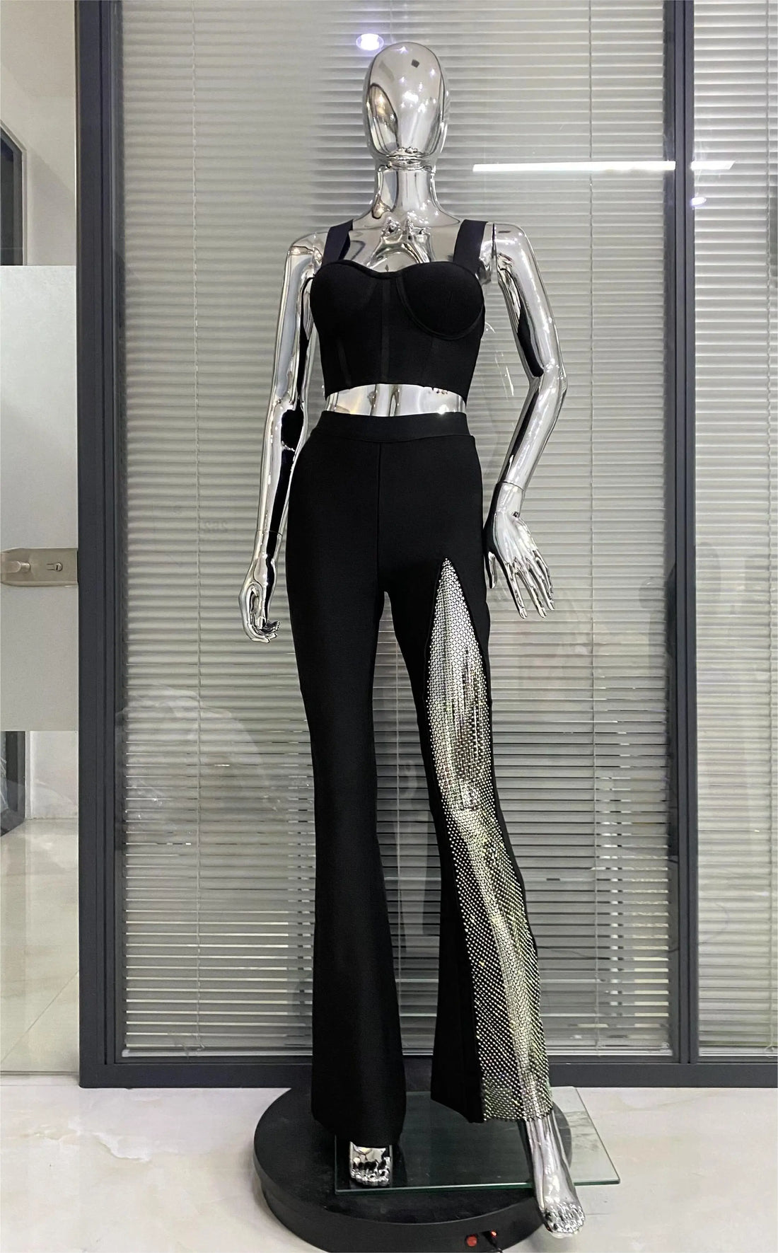 2023 New Summer Women Sexy Tops Pants Set Bandage Fashion Shining Diamond Celebrate Nightclub Party Women's Set Wholesale
