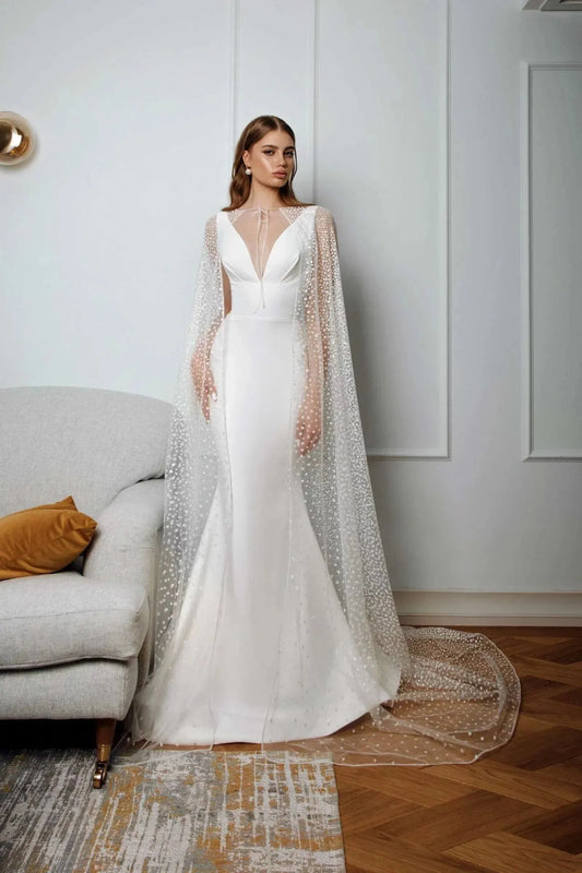 فستان سهرة حورية البحر باللون العربي الشمبانيا دبي مع كيب فاخر من الخرز فساتين رسمية لحفلات الزفاف للنساء