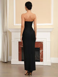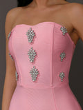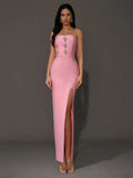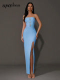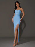 2024 Sexy Women'S Light Luxury Rhinestone Bandage Dress Strapless Sleeveless Bodycon Split Length Dress Christmas Party Vestidos