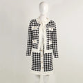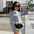 2025 Autumn Women'S Houndstooth Tweed 2 Piece Sets Of Sexy Long-Sleeved Round Neck Button Coat + Short Pencil Skirt Party Suits