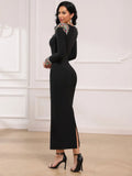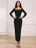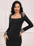 2025 Elegant Women's Light Luxury Nail Bead Bandage Dresses Square Neck Long Sleeve Bodycon Long Dress Evening Party Vestidos