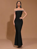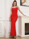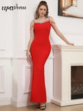2025 Elegant Women's Spaghetti Strap Nail Diamond Design Bandage Dress Bodycon Backless Long Dress Fashion Dinner Party Vestidos
