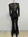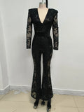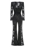 2025 Sexy Women's Light Luxury Embroidered Hot Diamond Patchwork Design jumpsuit V-neck Long sleeved Evening Party Horn jumpsuit