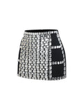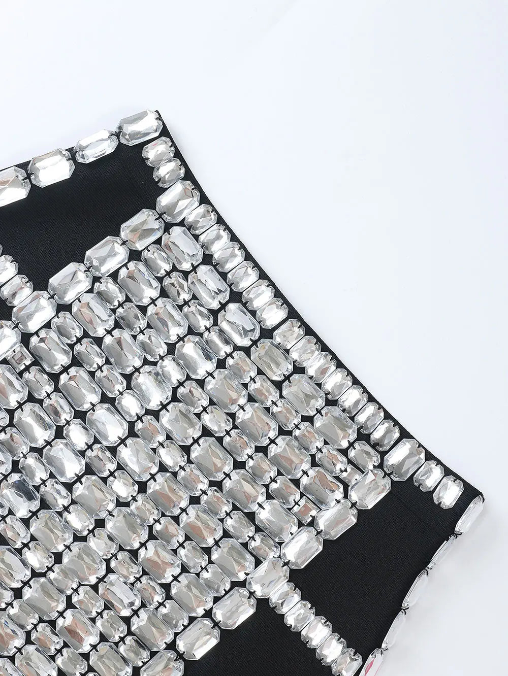 2025 Women Light Luxury Nail Bead Short Skirt Sets With Hanging Neck Style Sleeveless Ultra Short Top + Mini Skirt Two-Piece Set