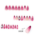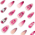 24pcs Charming Almond Fake Nails Smudging Rose Pink Almond False Nail White Ice Flower French Style Press On Nail For Spicy Girl