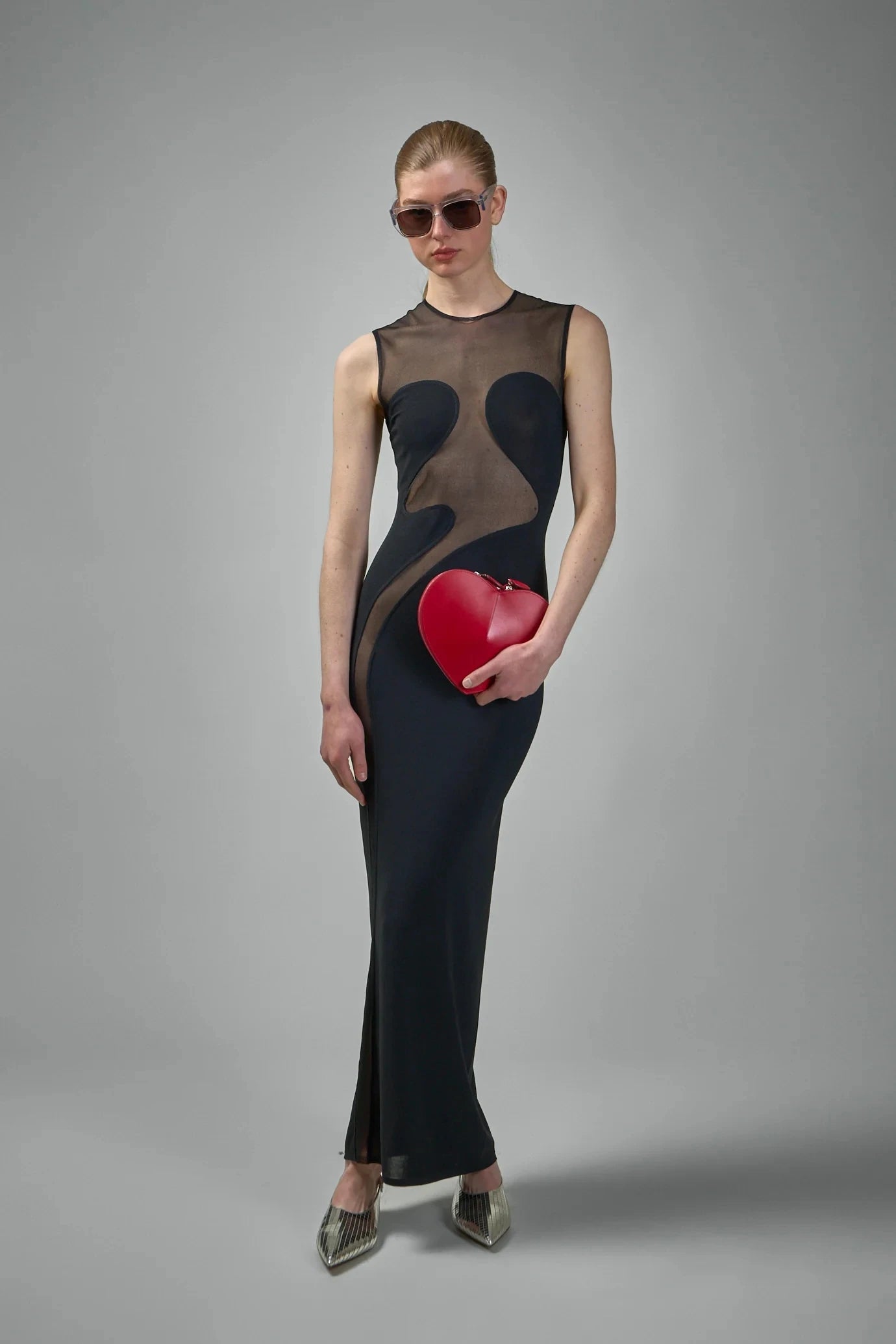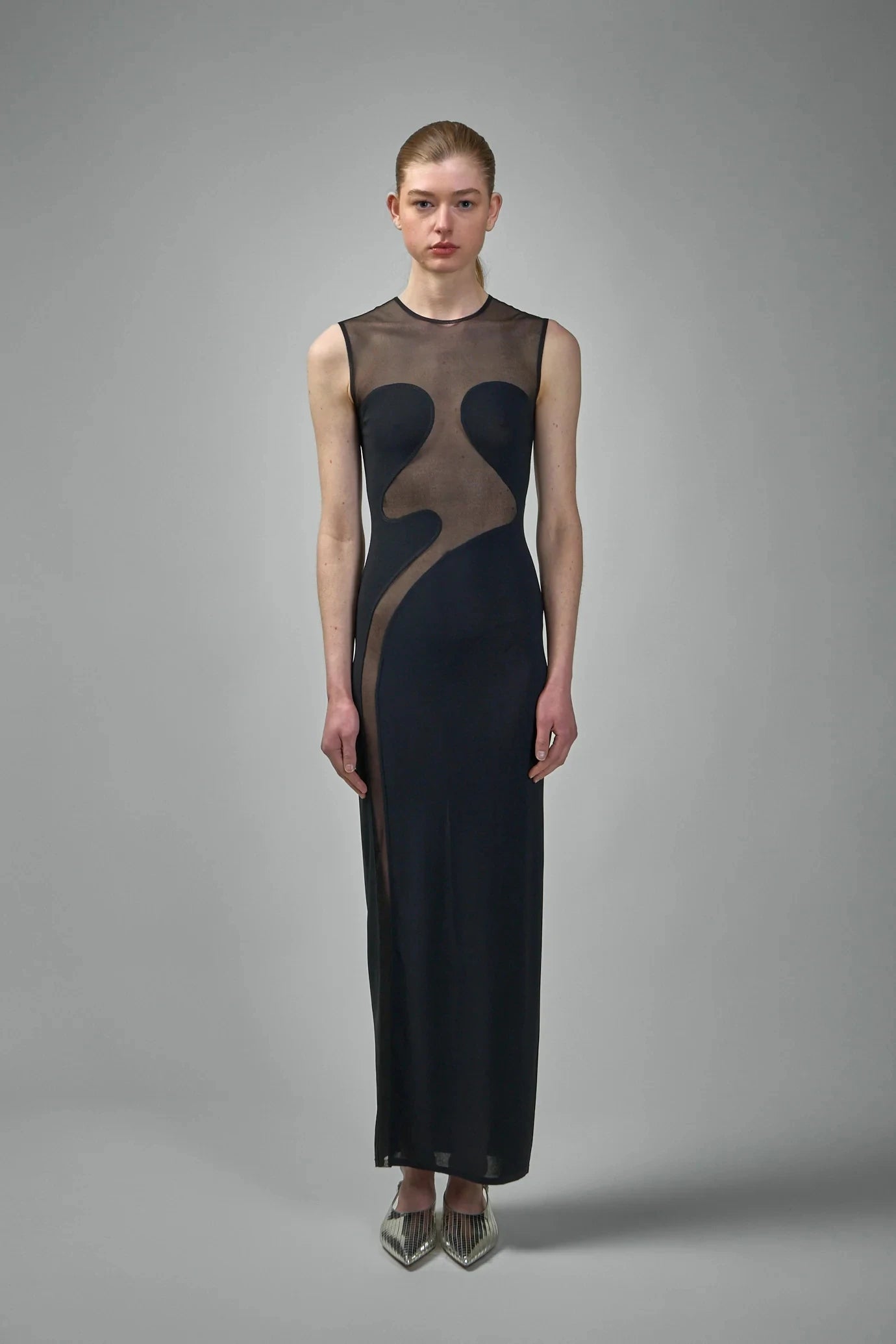 Black White Women Sleeveless Sexy O-Neck Bodycon Bandage Long Dress Mesh Celebrate Evening Party Nightclub Outfit Wholesale