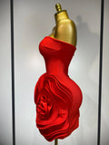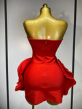 Celebrity Sexy Strapless Backless Flower Red Mini Bodycon Bandage Dress Knitted Elegant Evening Club Luxury Birthday Dress