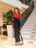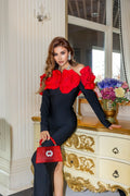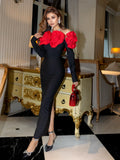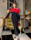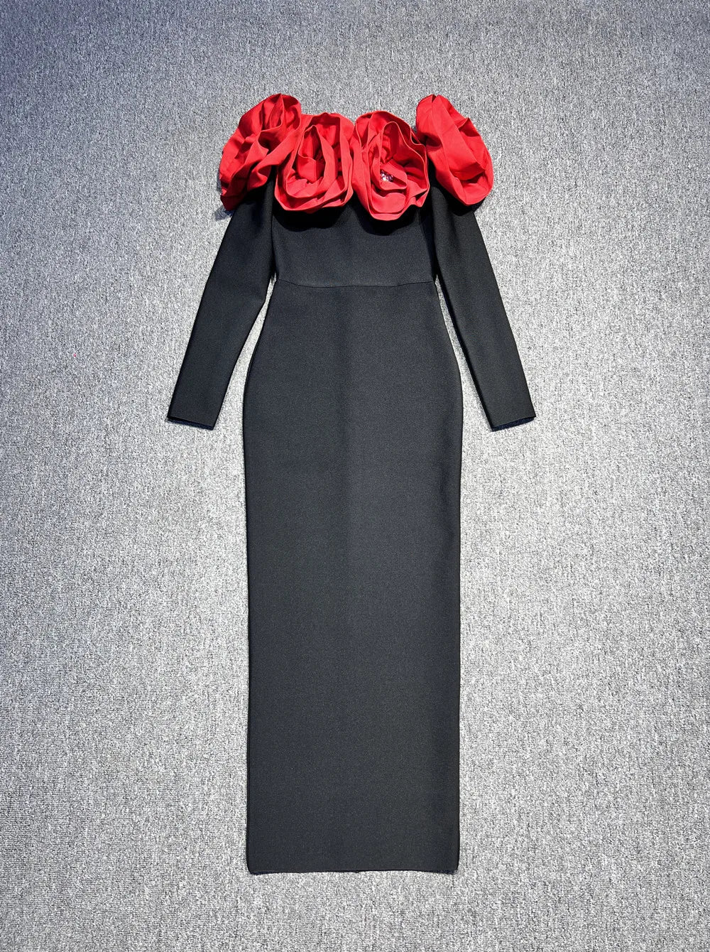 Winter Women Long Sleeve Red Florals Bodycon Long Bandage Dress Celebrate Evening Party Birthday Fashion Dress