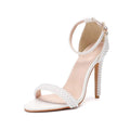 Luxury Pearls Rhinestones Ankle Strap Women Sandals Fashion Summer Stiletto High heels Pumps Sandals Wedding Bridal Prom Shoes