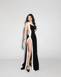 Women Sexy One Shoulder High Split Bodycon Long Bandage Dress Celebrate Birthday Party Photo Shoot Wear