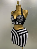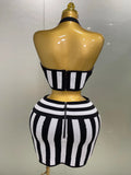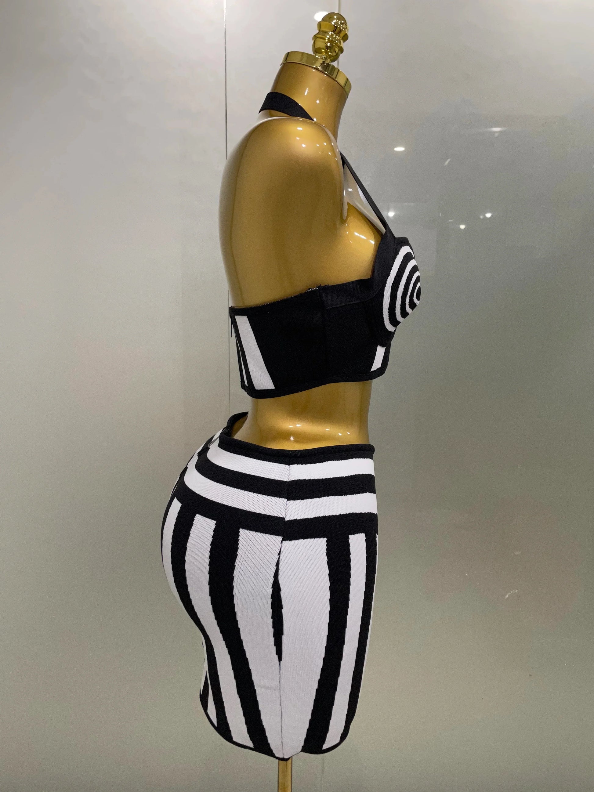 New Women Celebrity Sexy Jacquard Black White Two Piece Bodycon Striped Bandage Skirt Set Designer Evening Party Dress