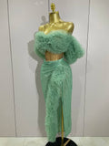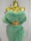 Shiny Sequins Top Short Skirt Two Pieces Set Women Sexy Celebrate Evening Prom Birthday Party Dress Nightclub Stage Outfit