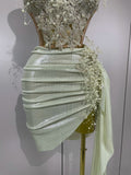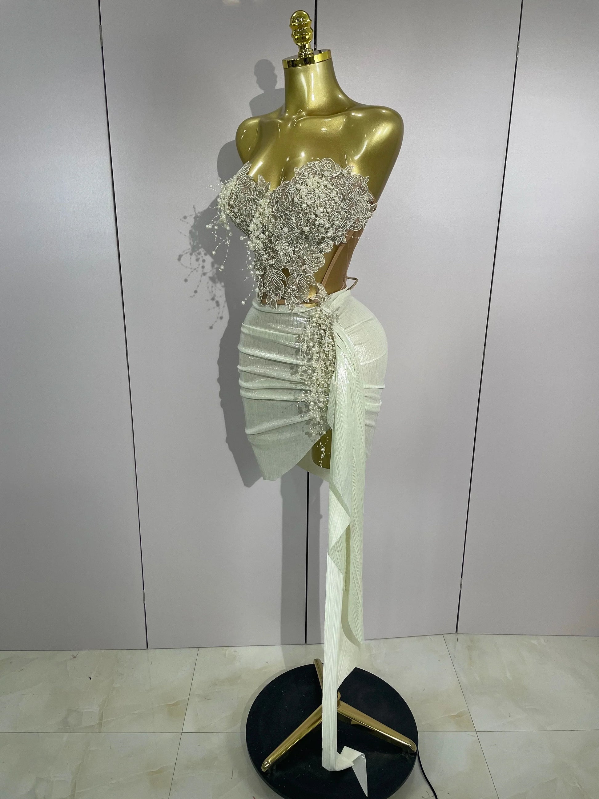 Luxury Shining Pearls Sexy Asymmetrical Skirt 2 PCS Set Women Evening Birthday Party Stage Dancer Performance Costume