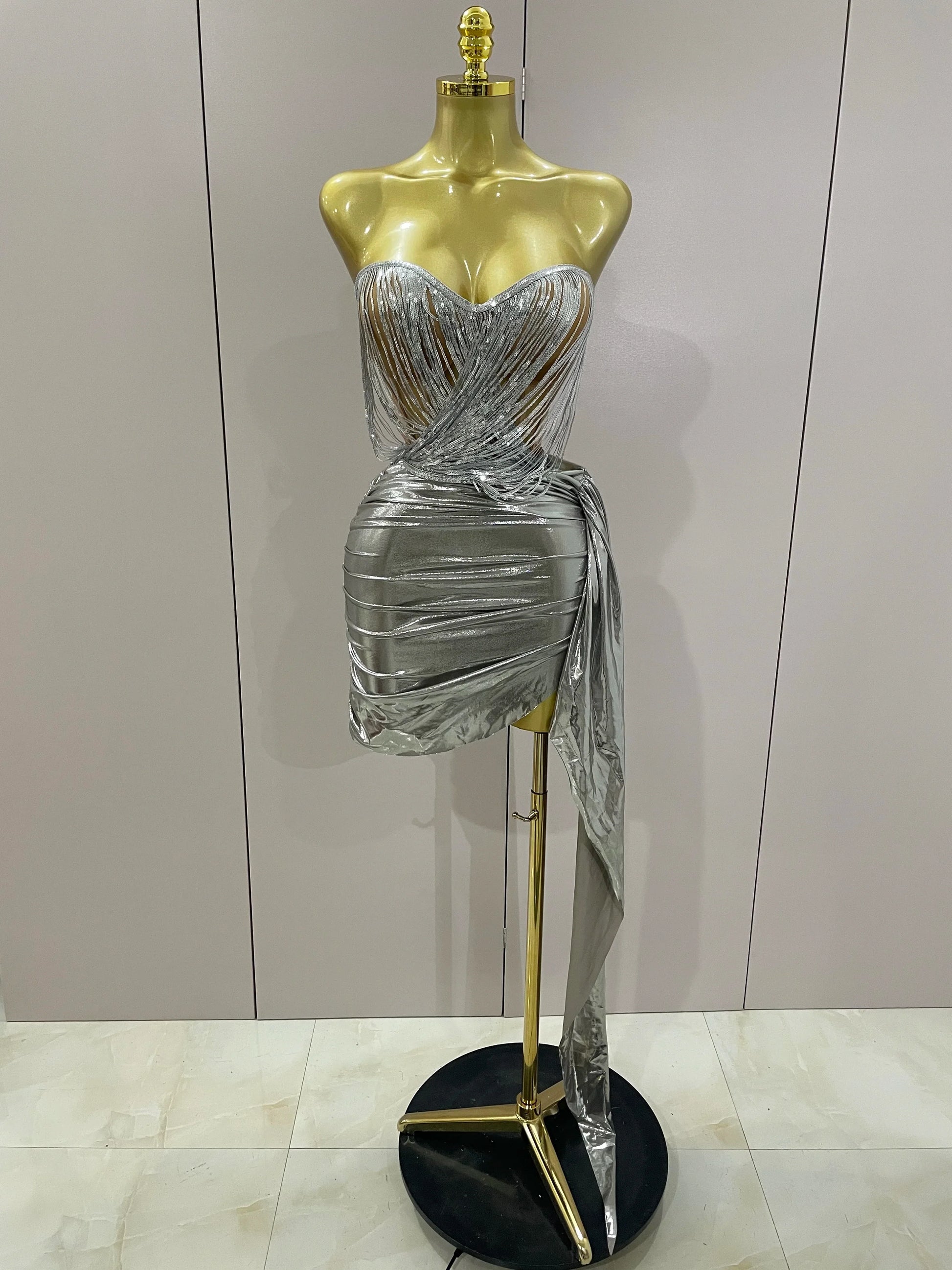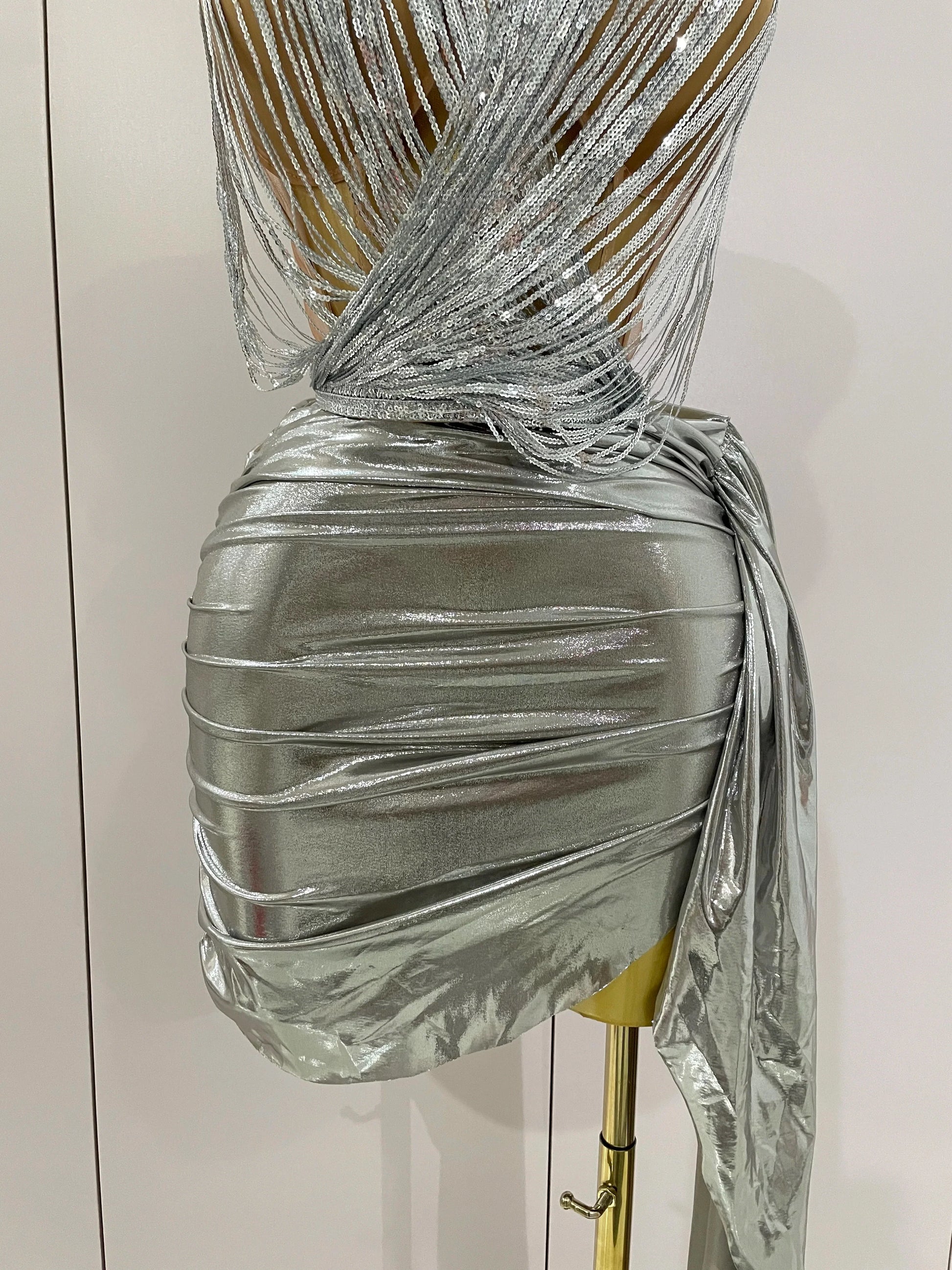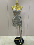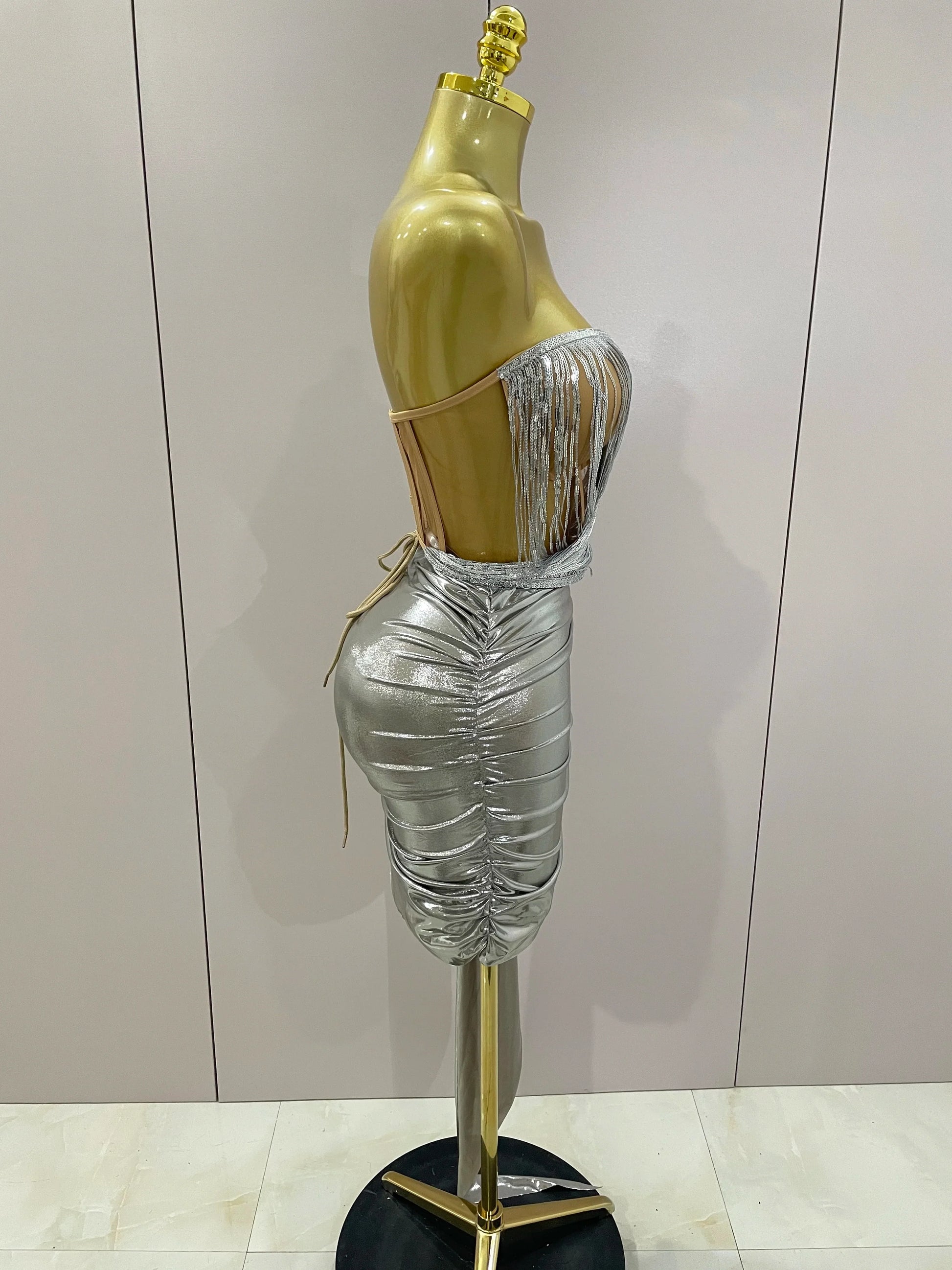 Shiny Silver Sequin Tassels Mini Dress 2-piece Set New Women Evening Birthday Party Club ShootPhoto Stage Costume