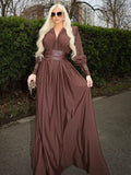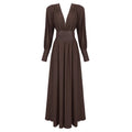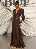 VC 2024 Spring Fashion Dresses For Women Plunging V Neck High Waist Belt Long Sleeves Wedding Party Dress Brown Gowns