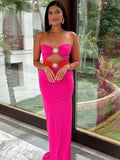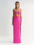 VC Black & Pink Sexy Strapless Hollow Out Diamond High Slit Shinning Rhinestones Bandage Long Dress Bodycon Celebrity Dress