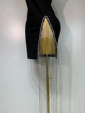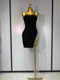 Women Celebrity Sexy Strapless Backless Black Diamond Tassels Mini Bodycon Bandage Dress Elegant Evening Club Party Dresses