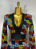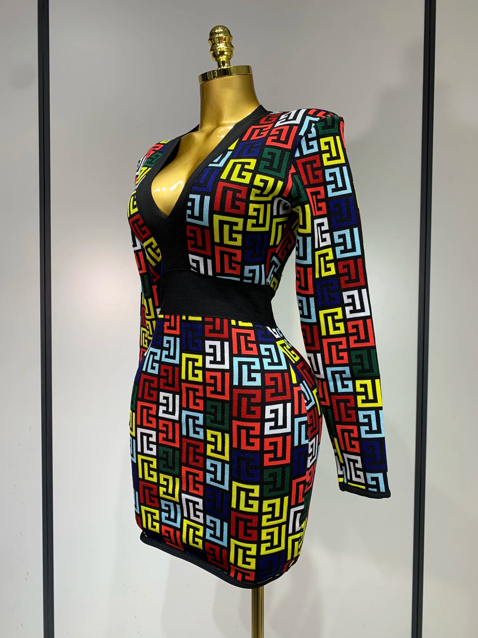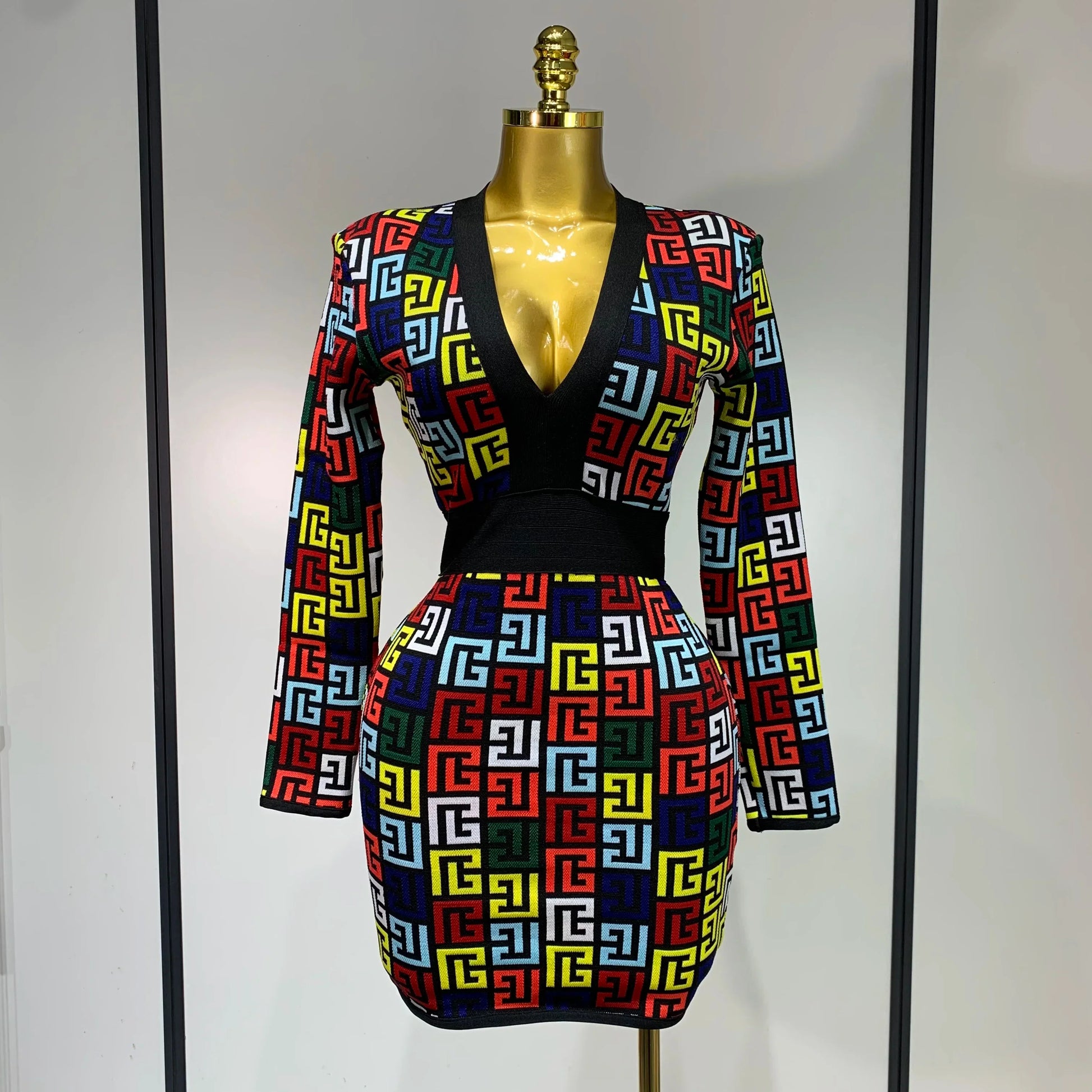 Women Long Sleeve V-Neck Bodycon Jacquard Short Bandage Dress Elegant Evening Luxury Birthday Party Cocktail Outfit