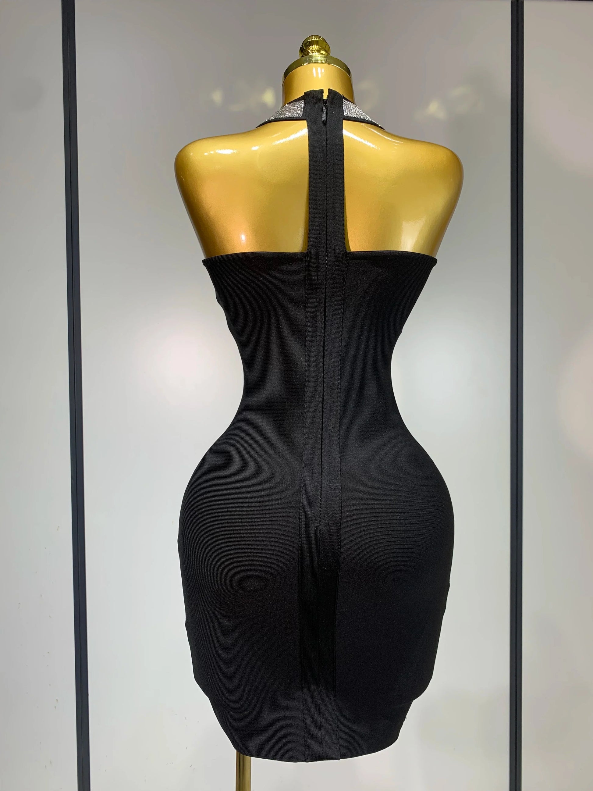 Women Sexy Backless Diamonds Sparkly Black Bodycon Bandage Dress Elegant Evening Club Luxury Birthday Party Dresses