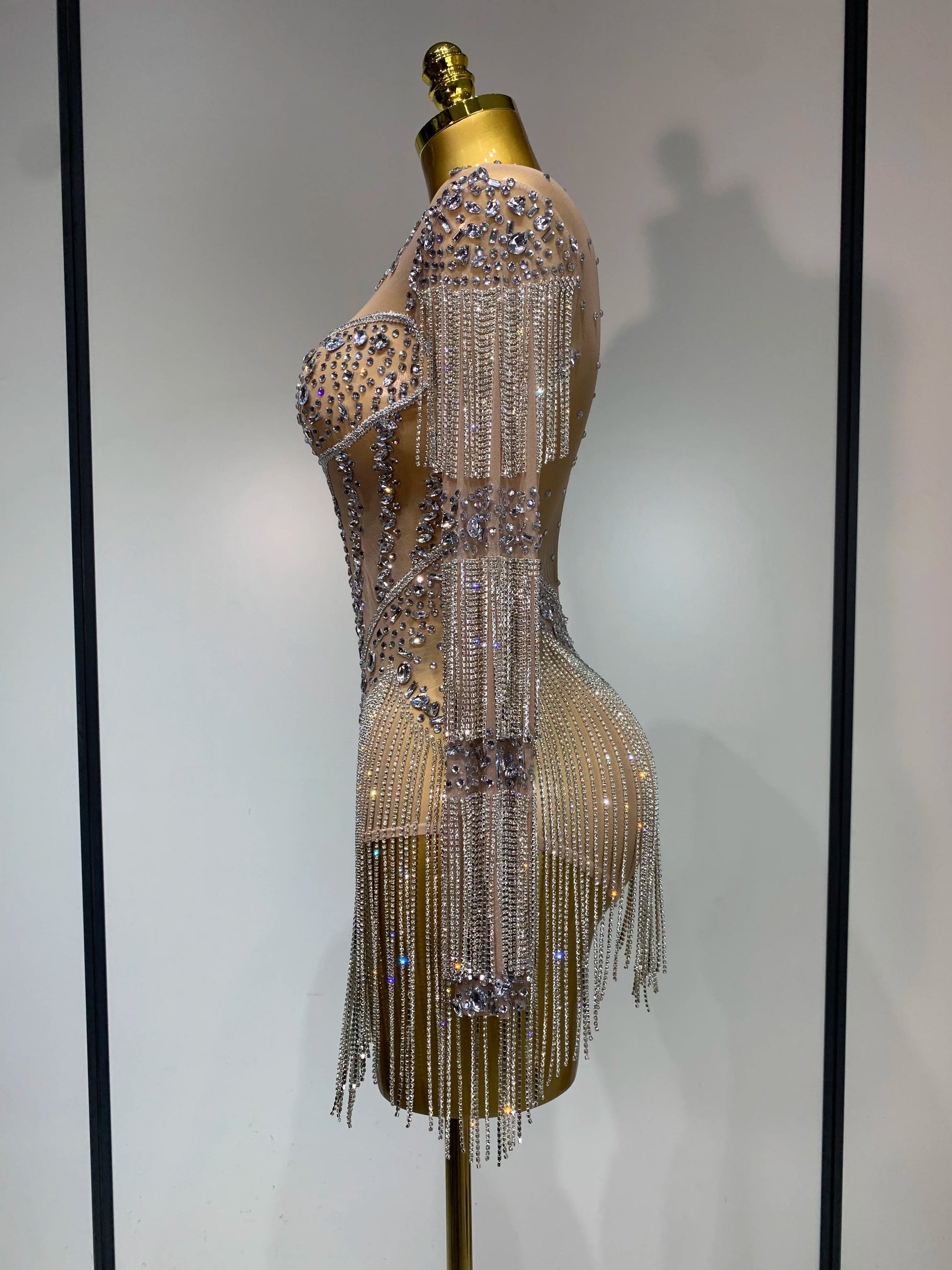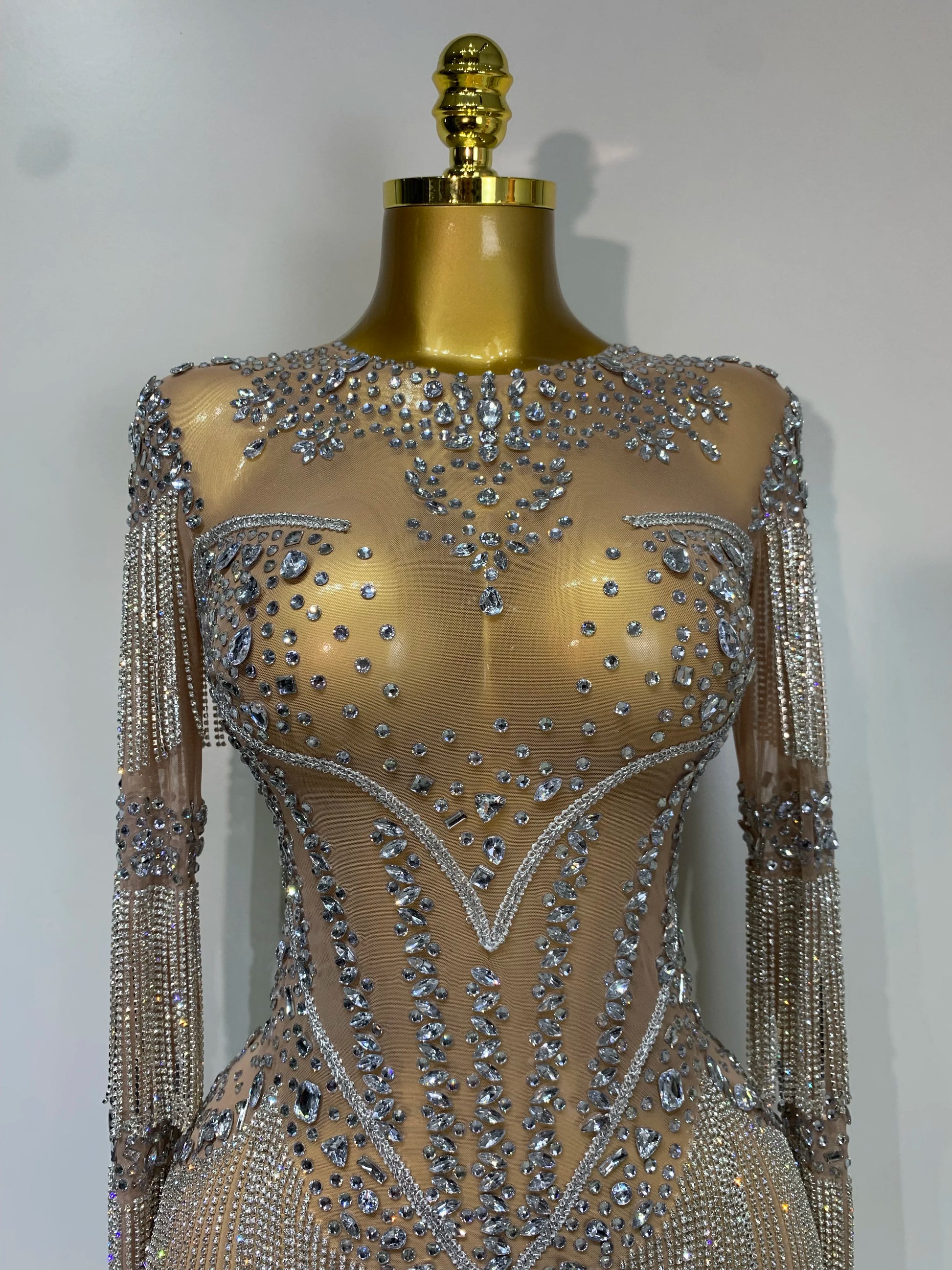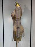 Women Sexy Mesh See Through Performance Dance Nightclub Rompers Singer Stage Outfit Sparkly Rhinestone Bodysuit Birthday Wear