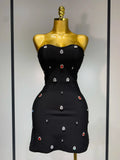Women Sexy Strapless Colorful Crystal Bodycon Mini Bandage Dress New Spring Elegant Party Celebrate Birthday Outfit