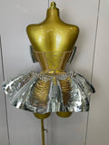 Women Silver Sequins Rhinestone Sexy Backless Two Piece Set Birthday Party Club Fancy Outfit Stage Performance Costume