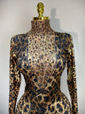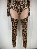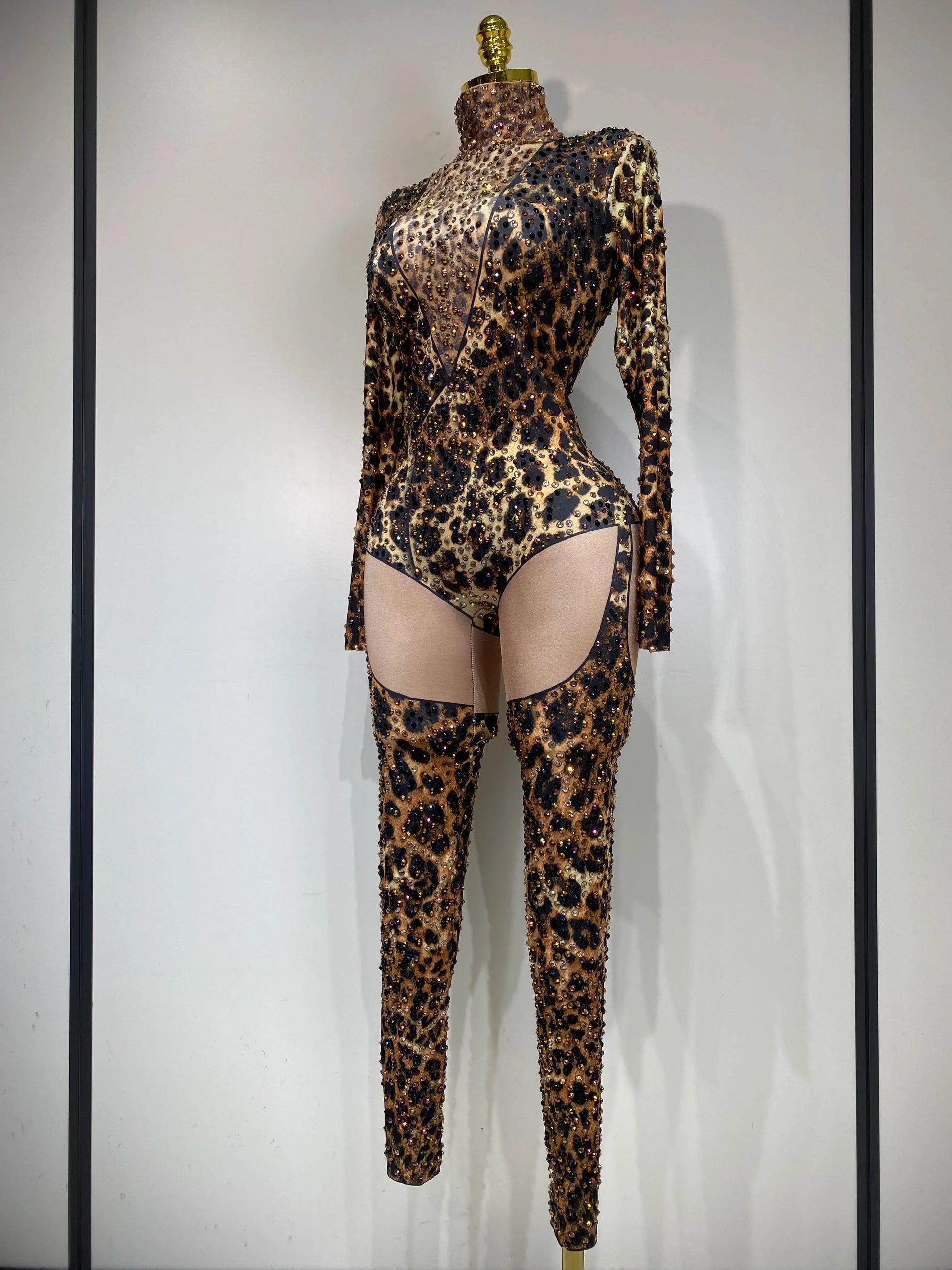 Women Stretch Leopard Print Sexy Bodycon Jumpsuit Bar Nightclub Singer Dancer Luxury Diamond Stage Performance Outfit