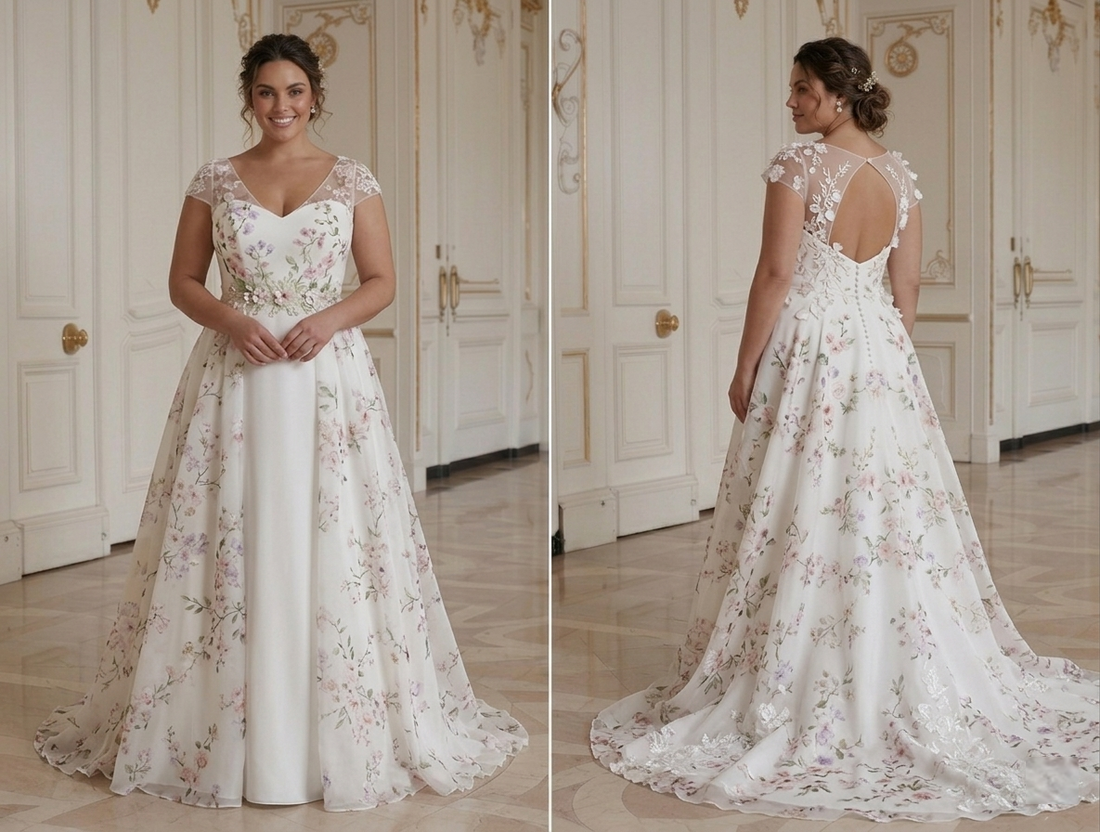Spring Wedding Dress For Plus Size Bride Floral Romantic Bridal