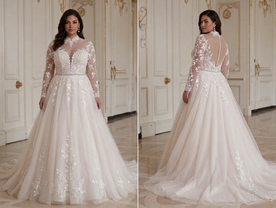 Wedding Dress With High Neck Design For Plus Size Brides Modest Style