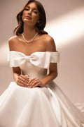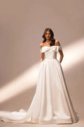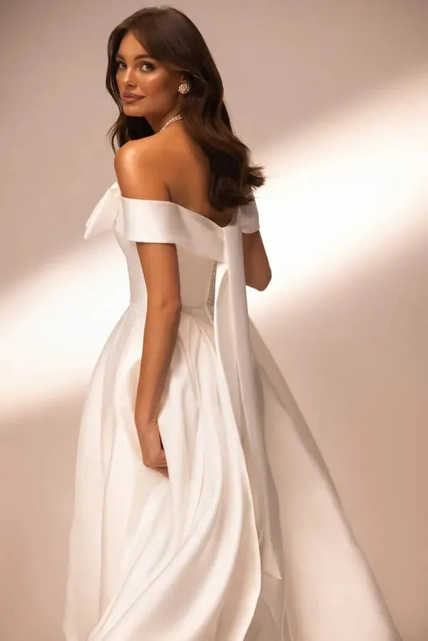 Elegantes Satin-Hochzeitskleid aus der Schulter A-Linie für Frauen bodenlange Brautkleider Anpassen nach Maß Robe de Mariee
