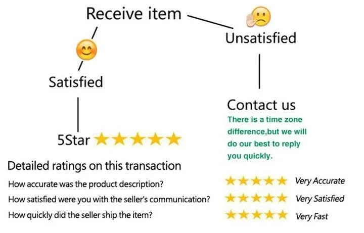 Ihre Zufriedenheit ist unser ultimatives Ziel. Wenn Sie aus irgendeinem Grund mit Ihrem Kauf nicht völlig zufrieden sind, empfehlen wir Ihnen, sich an unser engagiertes Kundendienstteam zu wenden. Wir sind hier, um auf Ihre Bedenken zu hören, Probleme anzugehen und auf eine Lösung hinarbeiten, die Sie mit Ihrem Einkaufserlebnis selbstbewusst und zufrieden fühlen.