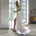 Moderne kurze Brautkleider mit abnehmbarer Schleppe aus der Schulter mit Schnürung aus Satin, Brautpartykleider, sexy Vestidos de Novia