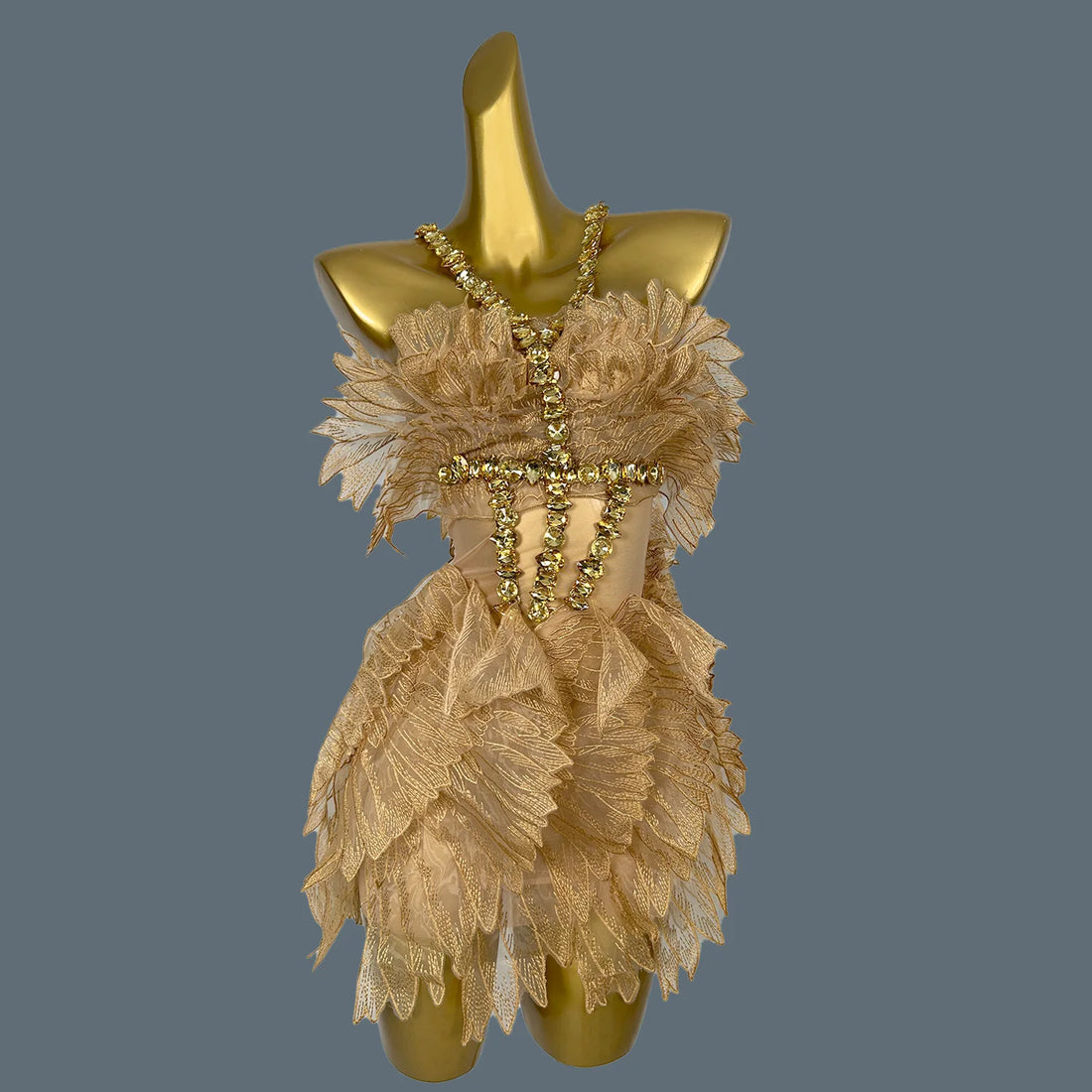 Women Celebrity Sexy Wing Beading Diamonds Gold Short Dress Wedding Party Prom Nightclub Sparkly Gowns Vestido 2024 Jinchan