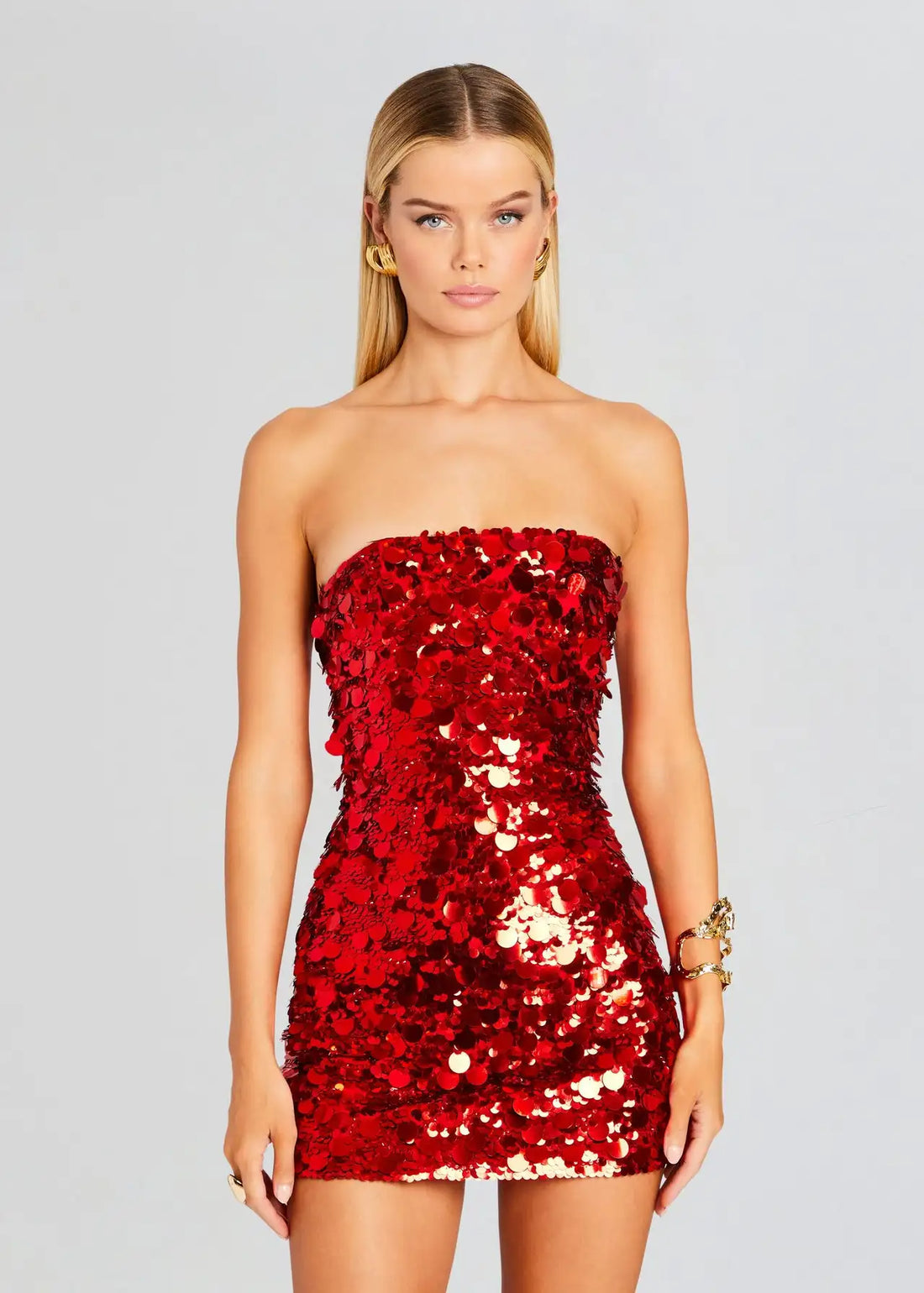 Red Gold Sequins Shinning Sexy Strapless Bodycon Mini Dress Nightclub Party Celebrate Birthday Date Dress Vestido