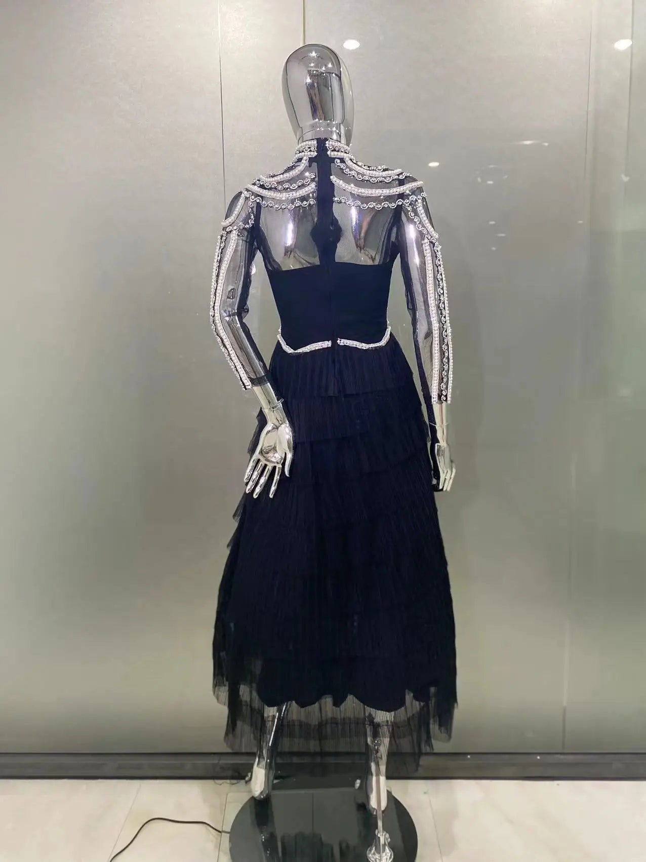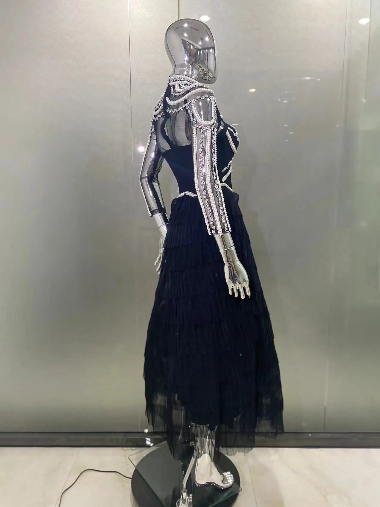 2024 New Autumn Women Long Sleeve Sexy Beading Crystal Ball Gown Long Dress Celebrate Fashion Red Carpet Celebrity Dress Vestido