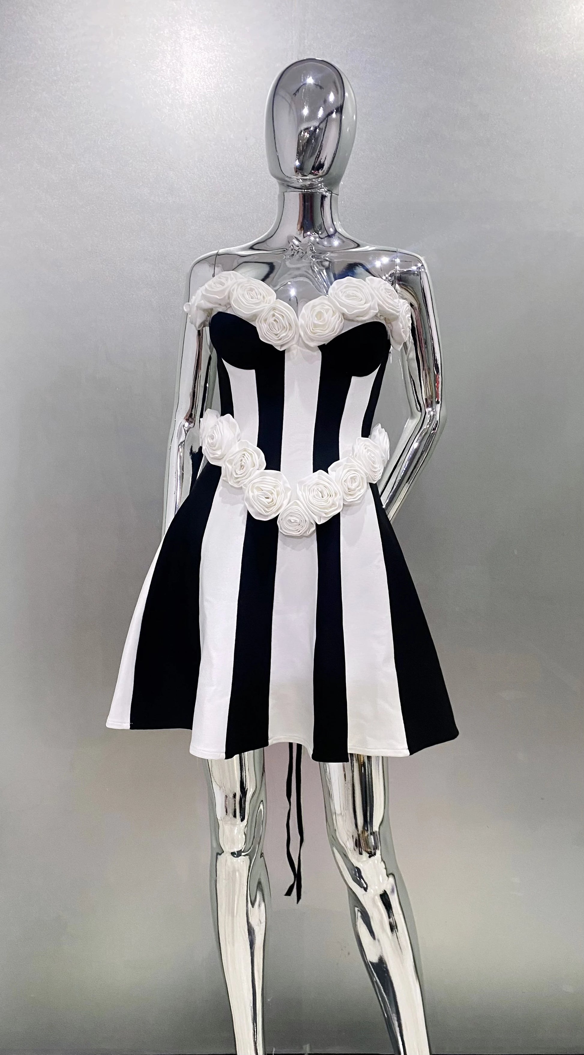 2025 New Spring Women Sexy Strapless White Florals A-Line Mini Bandage Dress Celebrate Evening Party Birthday Dress