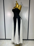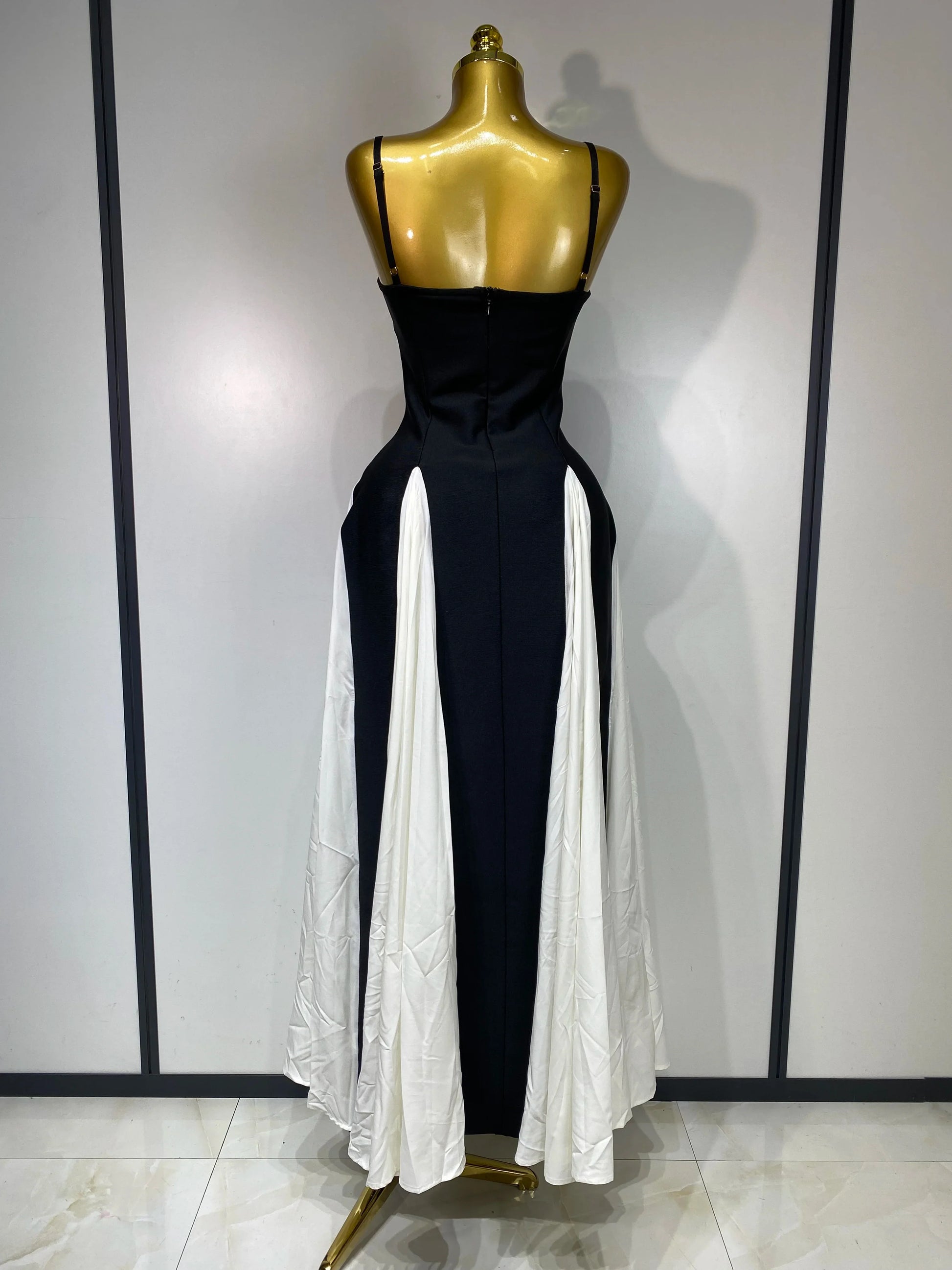 2025 New Women Contrast Color Camisole Long Dress Elegant Sleeveless Backless High Waist Bandage Dress High Street Banquet Gown