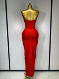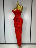 2025 Newest Women Sexy Strapless Backless Red Flower Midi Bandage Dress Celebirty Elegant Evening Club Party Birthday Dresses