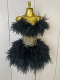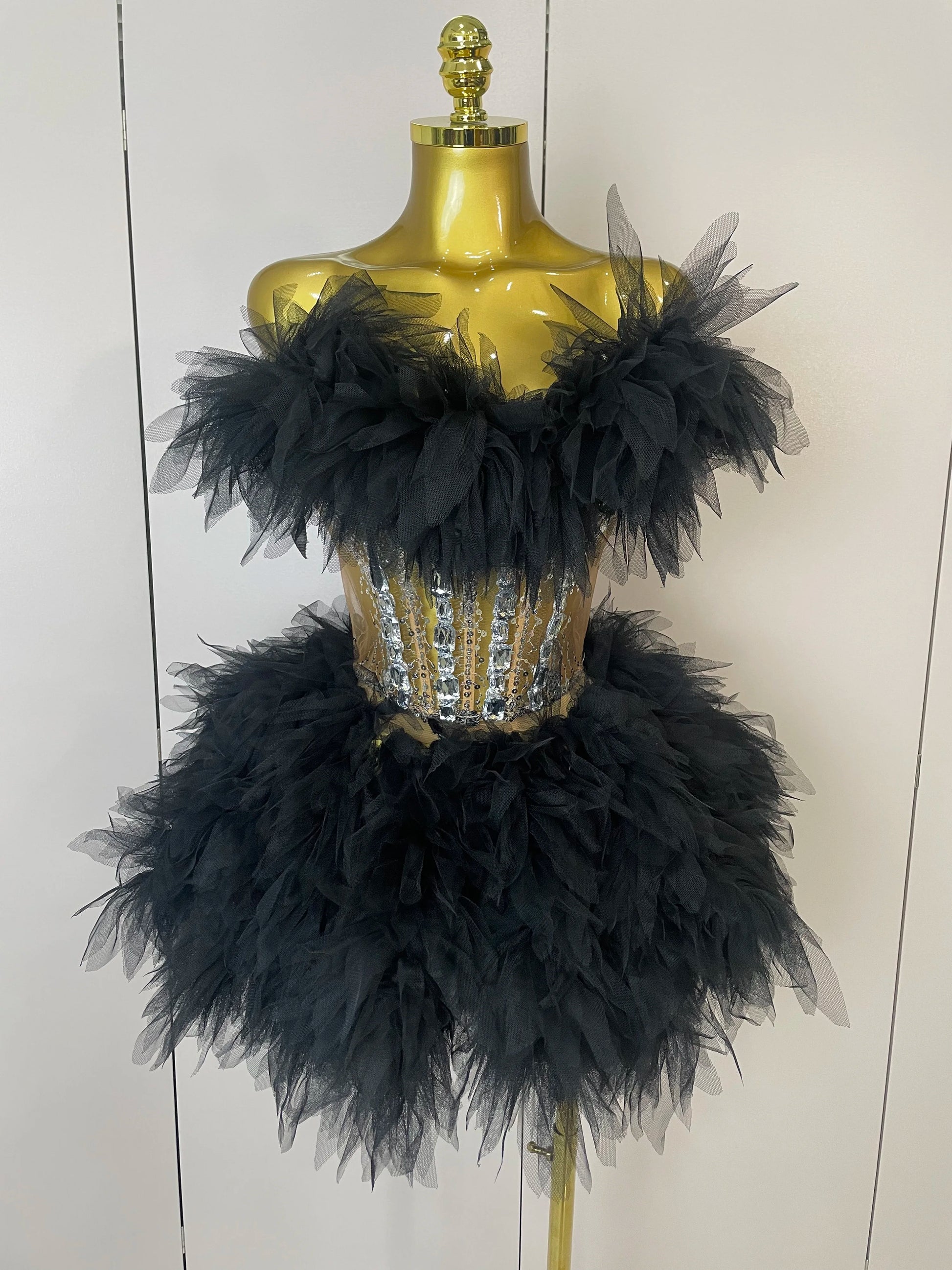 2025Women Sexy Backless Strap Mesh Fluffy Skirt 2 Pieces Diamond Sequins Stage Performance Costume Birthday Party Shooting Dress