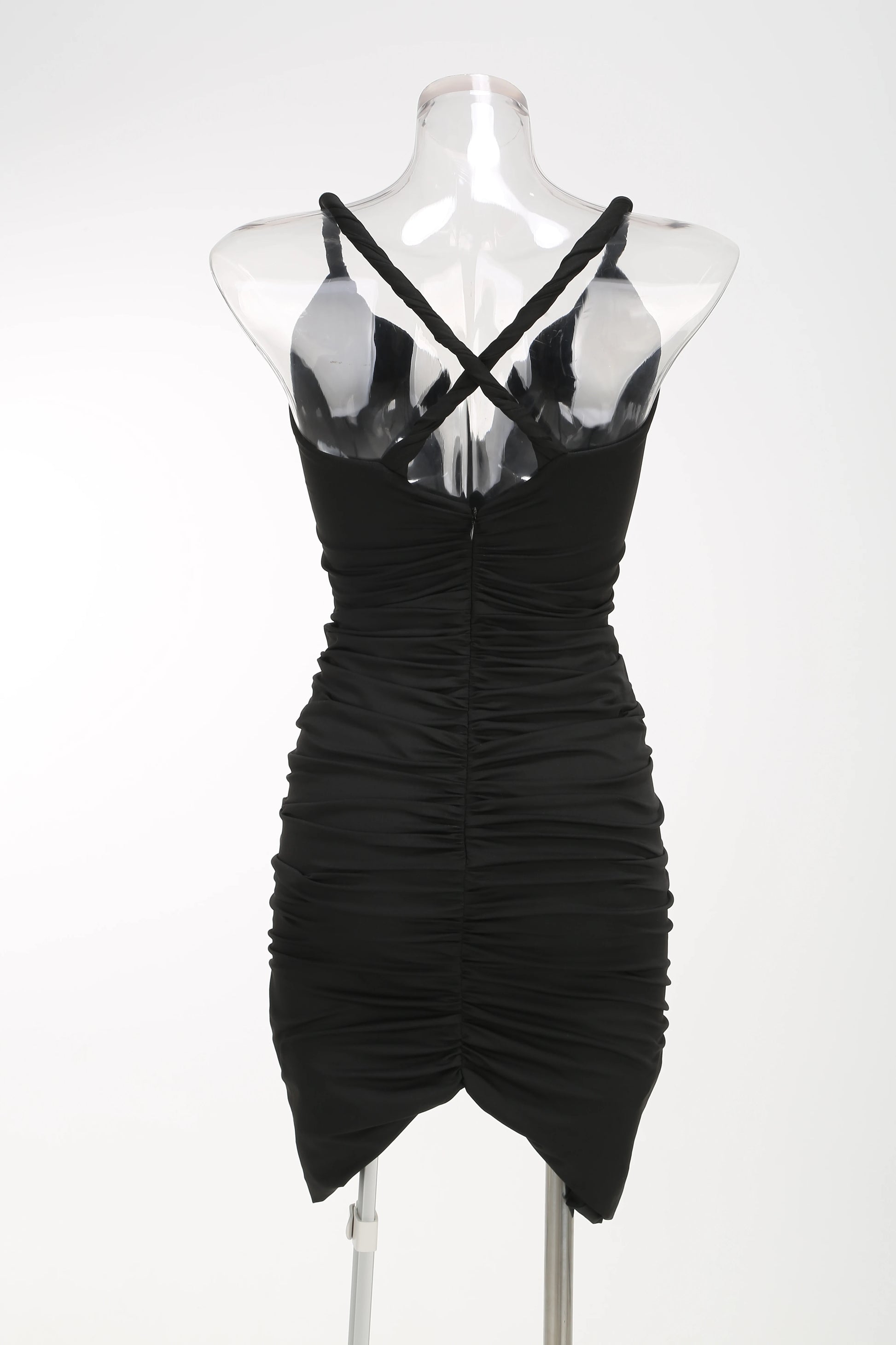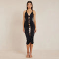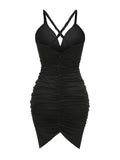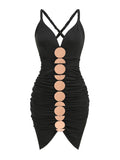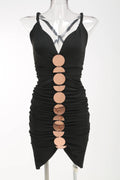 Black Color Women Sleeveless Sexy V-Neck Golden Big Circle Sequins Bodycon Mini Dress Celebrate Evening Party Cocktail Dress