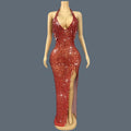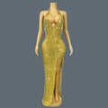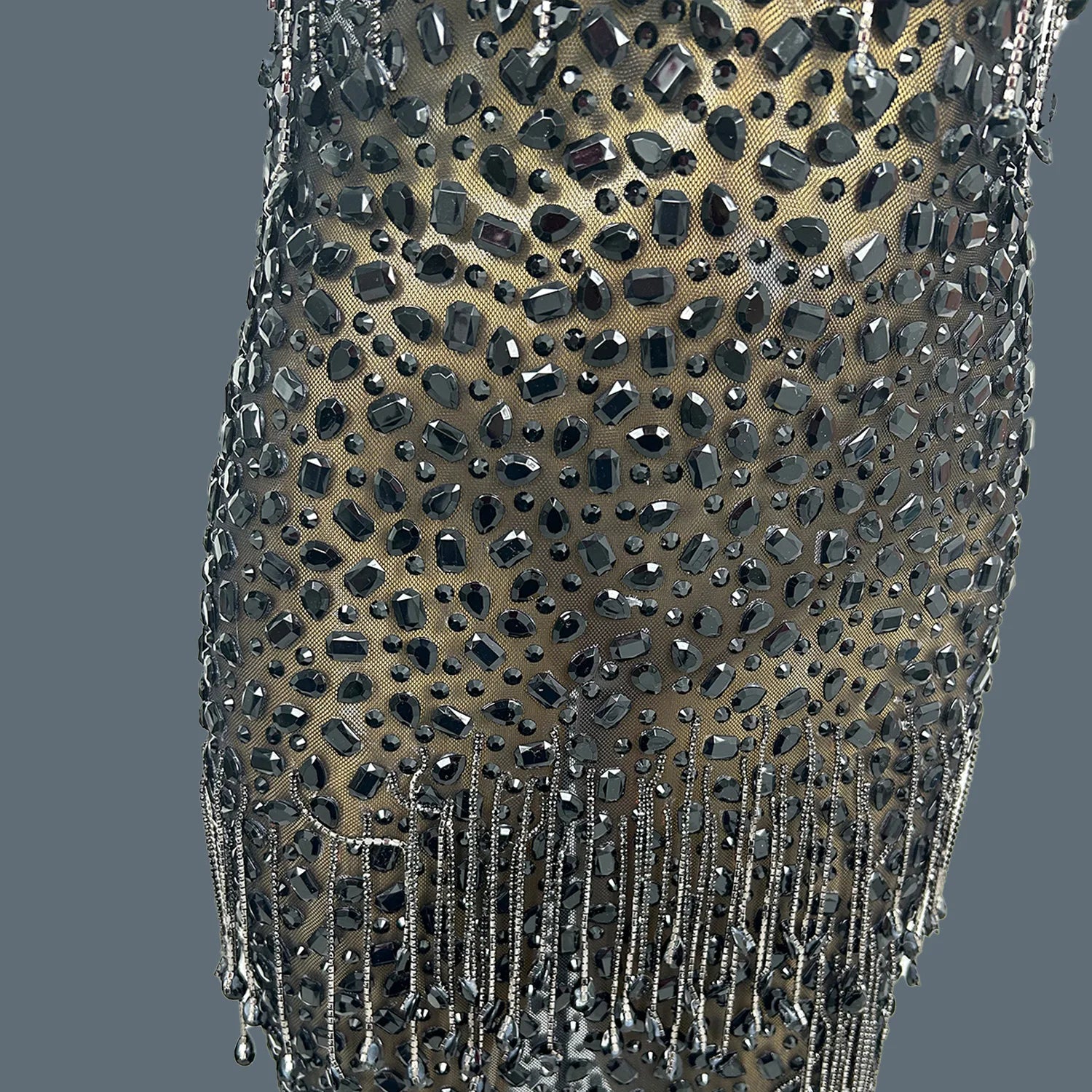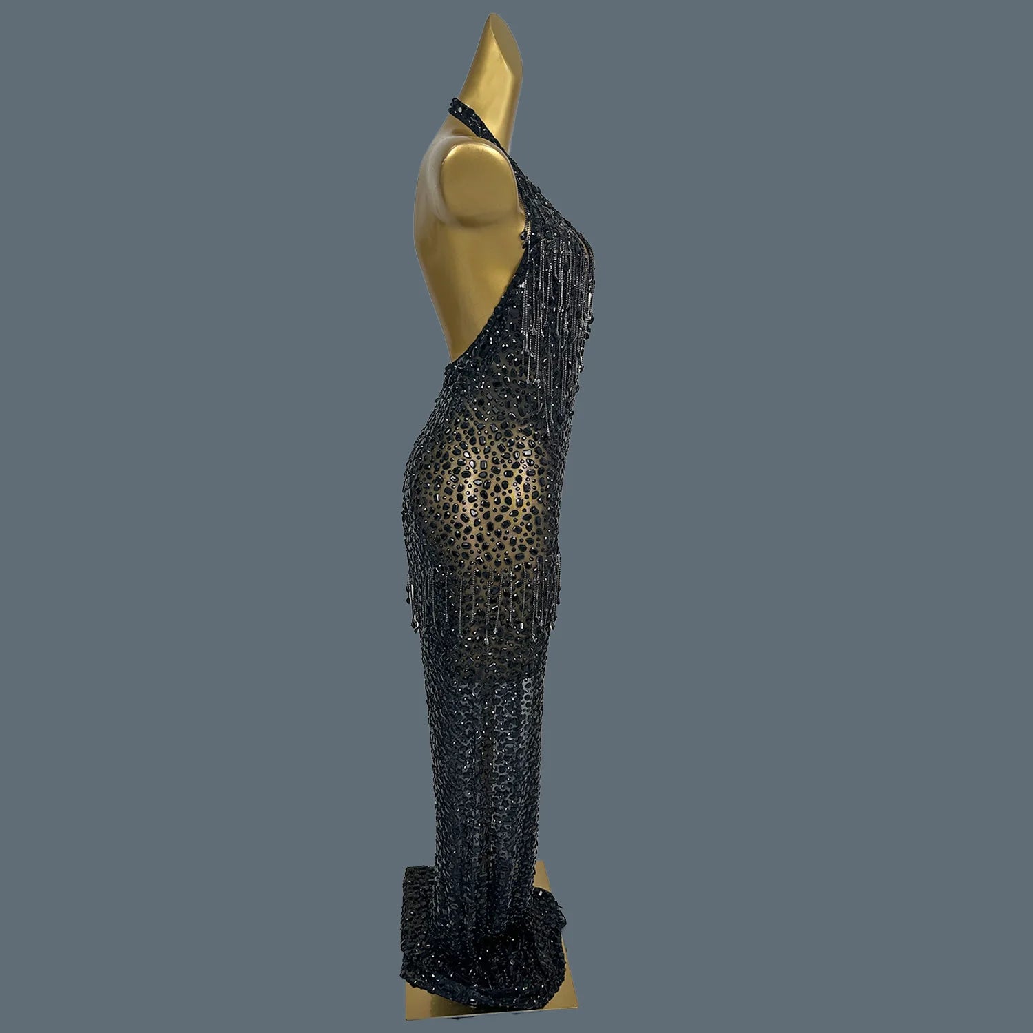 Black Tassel Sparkly Crystals Deep V Neck Evening Gown Low-cut Long Dress Birthday Celebrate Party Photo Shoot Wear Wulongweibo