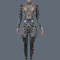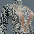 Classic Rhinestones Pearls Spandex Jumpsuit Women Nightclub Party Elastic Sexy Bodysuit Showgirl Performance Stage Wear Quanquan