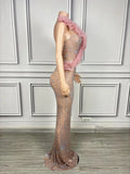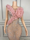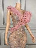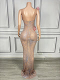 Elegant Ball Dress Sparkly Rhinestone Women Wedding Prom Birthday Party Evening Gown Sheer Mesh Luxury Sexy Maxi Dress Dousha