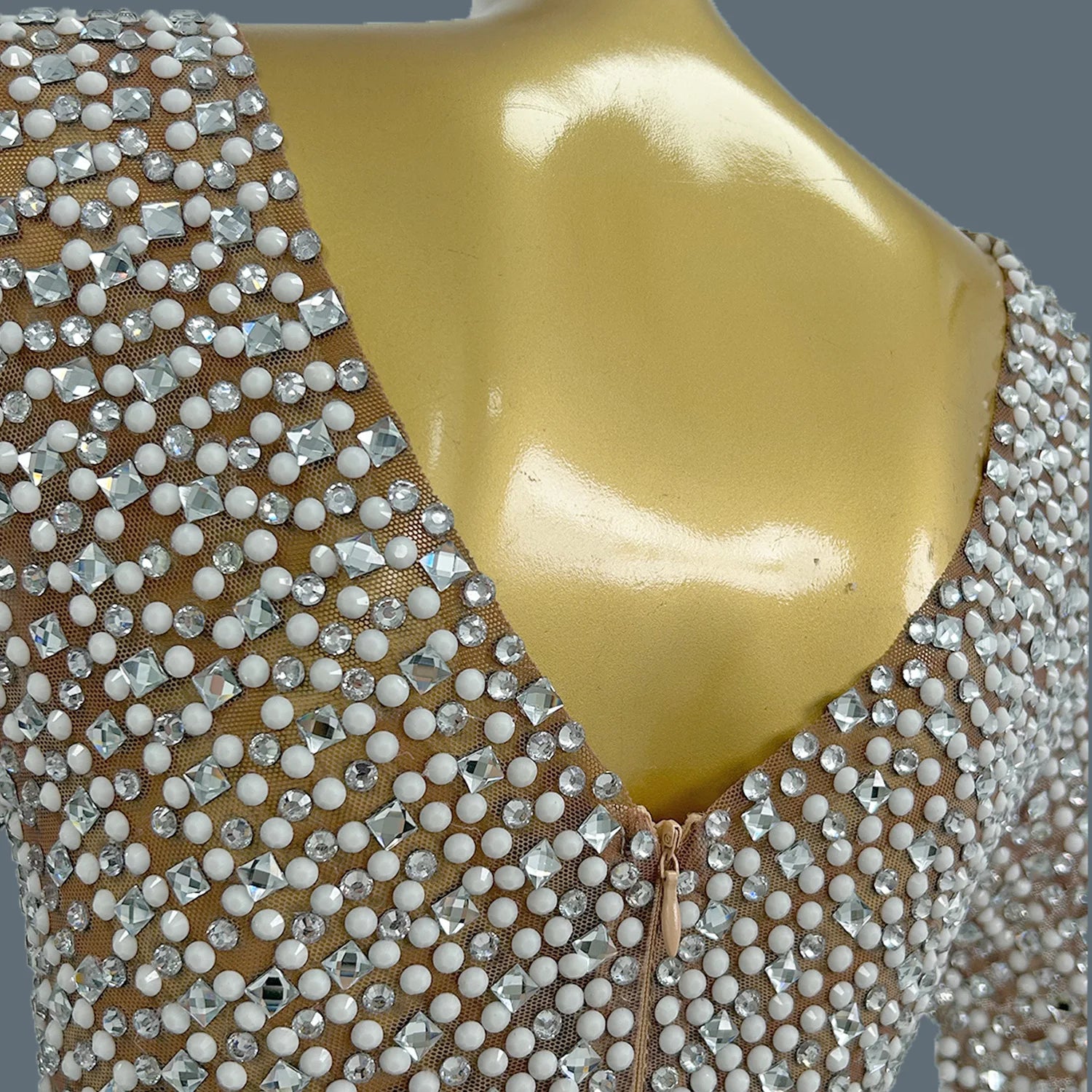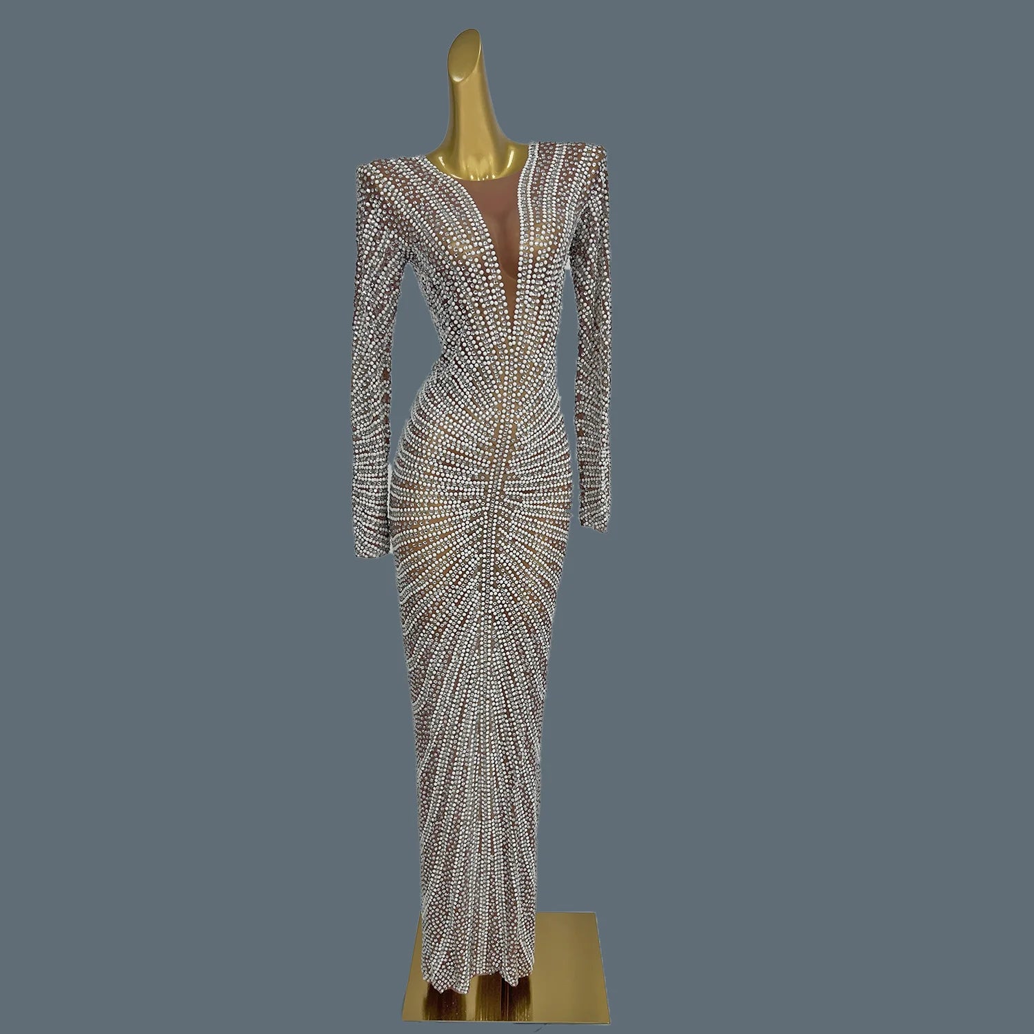 Elegant Birthday Party Short Dress for Women Celebrity Evening Sparkly Rhinestone Prom Gowns Luxury Long Sleeve Dress Tanhuang