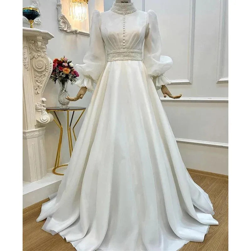 Elegantes vestidos de novia musulmanes de organza de corte A con mangas largas, vestidos de novia árabes de Dubái.