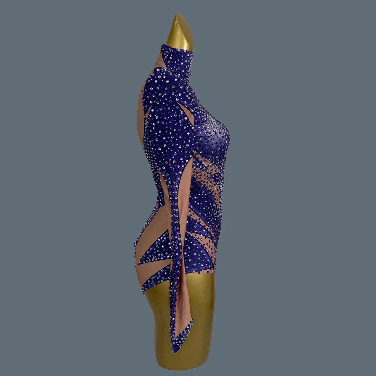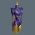 Fancy Rhinestone Purple Bodysuit Party Bar Show Perfprmance Costume Sensual Curves Shine Bodysuit Black Girls Club Wear Shandian