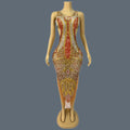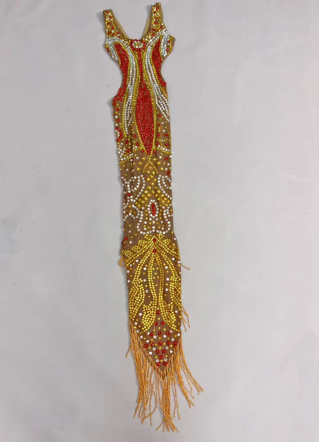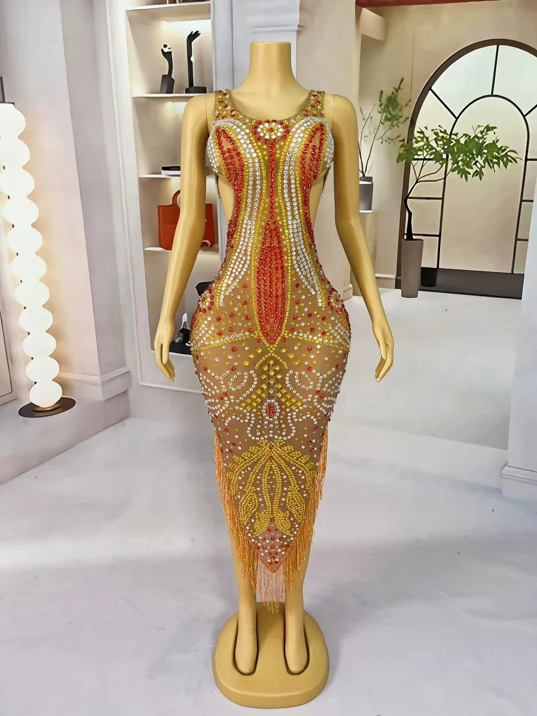 High-end Chic Asymmetrical Long Dress for Women Sparkly Rhinestone Tassel Evening Gown Birthday Queen Ball Dress Jinguangxian