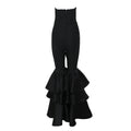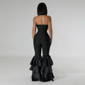 High Street Women Sexy Strapless Bodycon Ruffles Wide Leg Jumpsuit Bandage Celebrate Evening Party Jumpsuit