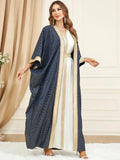 Kaftan Dubai Conjuntos musulmanes de lujo Manga murciélago Abaya abierta Moda Estampado de lunares Vestido de Ramadán de 2 piezas Toda la temporada