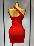 Luxury Birthday Dress Women Red Color Sexy One Shoulder Bodycon Bandage Mini Dress Celebrate Club Party Evening Fashion Dress